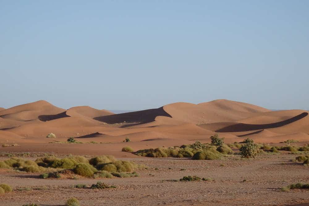 Fortsetzung der Fahrt durch eine karge, wüstenartige Landschaft durch den südlichen Teil vom Atlas Gebirge. Auf der faszinierenden Wüstenstrecke gelangen Sie zu den Oasen von Agdz und weiter in das Draa-Tal bis nach Zagora. Weiterfahrt nach M´Hamid. Sie verlassen die feste Straße. Mit dem Jeep fahren Sie in die Sahara zu den Dünen von Chegaga. Abendessen und Übernachtung im Zelt.