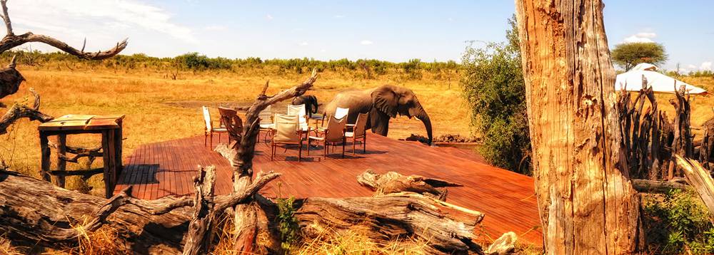 Nur sechs elegant eingerichtete Zelte mit en-suite Badezimmer, Spültoilette und einer romatischen open-air Dusche bilden dieses Camp. Das Dekor erinnert an alte Zeiten, vom Kolonialismus bis hin zu den Stämmen Afrikas, und umspannt Legenden aus allen Ecken dieses eindrucksvollen Kontinents. Das umwerfend gestaltete Hauptgebäude und der Pool blicken auf eine Pfanne, um die sich Wild in rauher Menge versammelt – eine Sternstunde für Tierliebhaber.