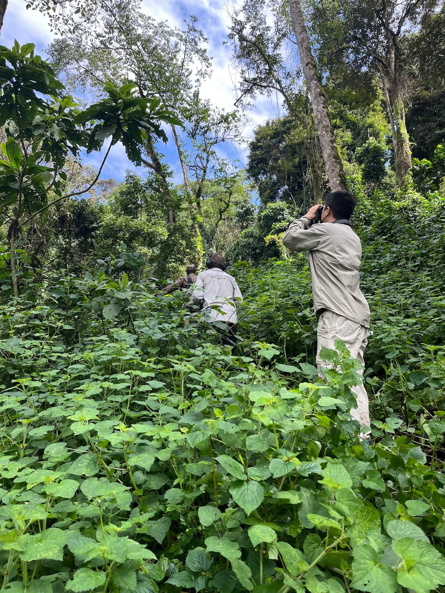 Zwei­ter Haupt­dar­stel­ler – neben den Goril­las – ist der Wald des Bwindi Impene­tra­ble Natio­nal­parks selbst. Die Länge der Wan­de­rung mit­ten durchs Dickicht (das von ein­hei­mi­schen Tra­ckern mit ihren Mach­ten frei­ge­schla­gen wird) vari­iert je nach Auf­ent­halts­ort der Pri­ma­ten, aber jede Minute in die­sem dicht wuchern­den tro­pi­schen Para­dies ist ein High­light in sich selbst.